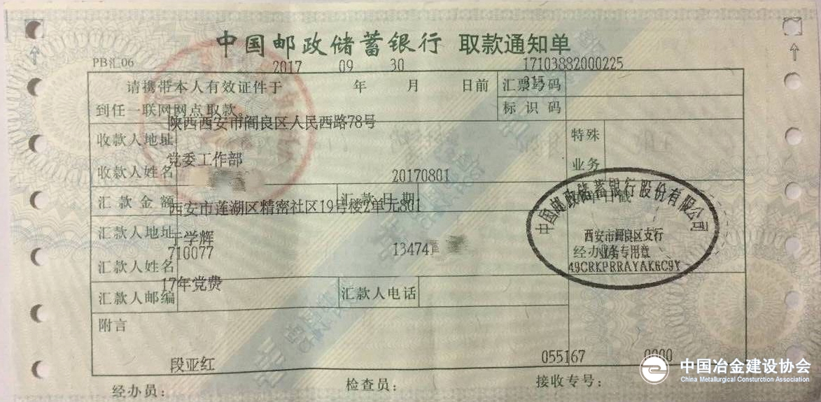 近日,九冶一公司退休党支部工作人员收到了一张银行汇款单,汇款人为83岁的老党员于学辉,汇款事由为个人2017年度党费。
