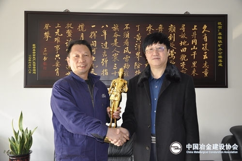 12月15日,风和日丽,艳阳高照,中国华冶集团副总经理兼安徽分公司经理马维清代表公司给业主安徽金安矿业有限公司董事长李荣森送去“建设单位鲁班金像”。