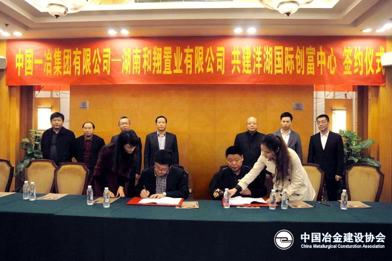 11月21日,中国一冶与湖南和翔置业有限公司在湖南长沙签约共建长沙洋湖国际创富中心工程合同。
