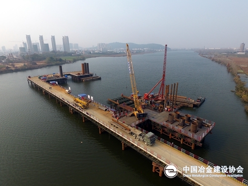 截至目前,中国一冶集团湖北分公司已完成80%钢栈桥、平台工程施工,主栈桥、主支栈桥,主墩钻孔平台均已完工,边墩钻孔平台也已完成2个。水上桩基将大规模成平面状展开整个施工作业。路上桩基施工已逐步打开工作平面,已完成各类桩基27根。