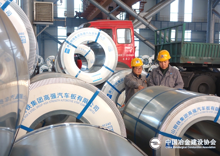 11月21日,河钢唐钢物流分公司高强汽车板库区职工正在组织汽车板产品外发。