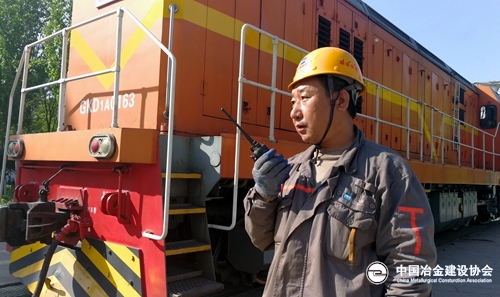 5月1日,河钢唐钢物流公司工厂站作业区内燃机车乘组人员正在紧张有序的指挥机组保产运输。