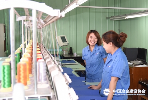 5月18日,太钢福利总厂两名职工在进行服装刺绣作业。