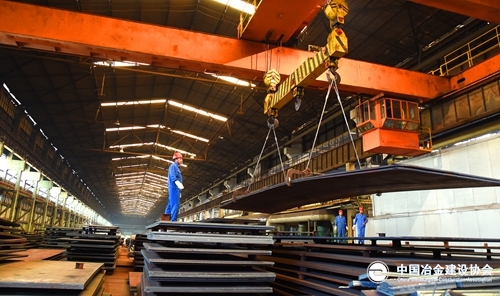 7月25日,太钢不锈热轧厂职工在对新板材品种起吊发运。
