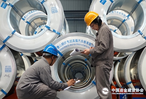 8月11日,河钢唐钢物流分公司高强汽车板库区职工正在核实产品信息、组织产品发货。