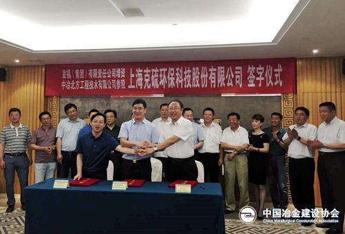 中冶北方总会计师、副总经理刘洪民,副总工程师、环保技术研究院院长闫为群,工程管理部副部长张海颖见证了协议签署。(中冶北方 李覆野)
