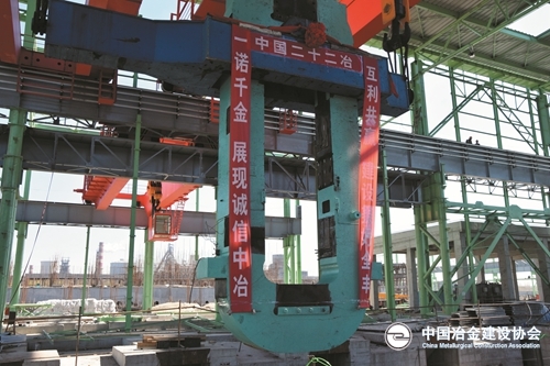 4月11日,中国二十二冶承建的唐山全丰薄板有限公司升级改造项目精轧机F6传动侧牌坊吊装就位。
