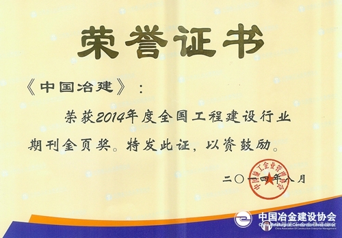《中国冶建》连续7年获全国工程建设行业“金页”奖