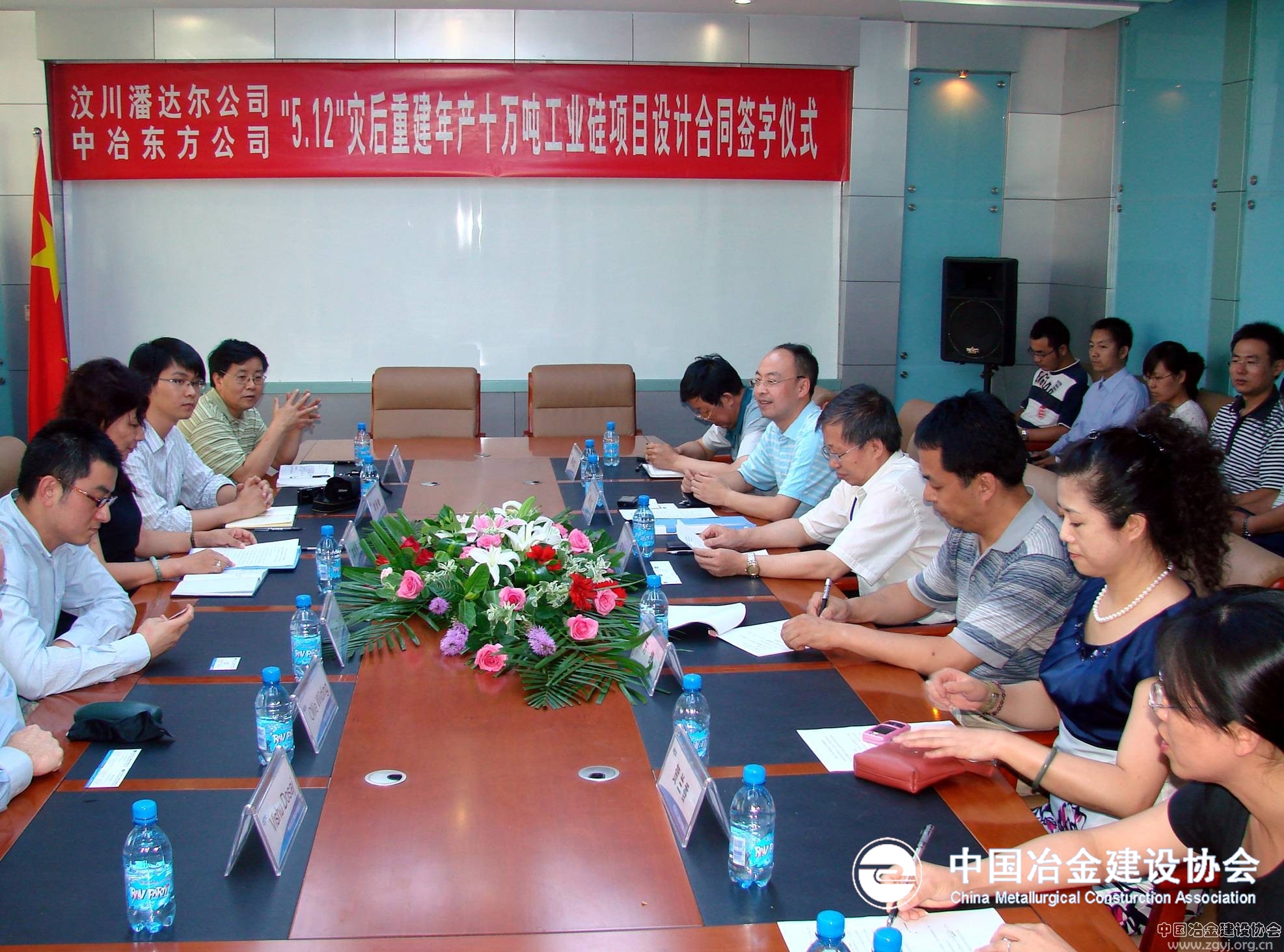 2009年7月28日15时28分,汶川潘达尔硅业股份有限责任公司“5.12”灾后重建年产十万吨工业硅项目设计合同签字仪式在中冶东方举行。汶川潘达尔硅业股份有限责任公司董事长、总经理陈晓燕女士,中冶东方副总经理辛胜利出席了签字仪式,合同签字仪式由中冶东方总经理助理、市场营销中心总经理陈岩峰主持,中冶东方负责该项目的三十余名有关设计及管理人员一同参加了会议。