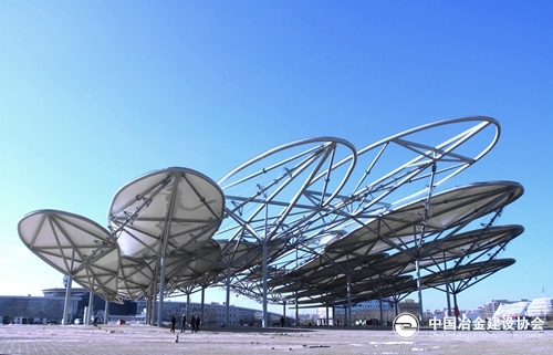 2月15日,中国二十二冶集团金结公司承建唐山世界园艺博览会主门项目主体结构施工完成。