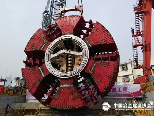 中国一冶机械化公司将国内直径最大单洞双线地铁盾构机刀盘吊装就位