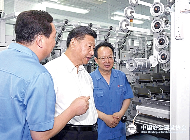 6月22日,中共中央总书记、国家主席、中央军委主席习近平在山西太原考察企业。图为习近平在山西钢科碳材料有限公司考察时,正在听取太钢党委书记、董事长李晓波的汇报。(新华社记者 李学仁 摄)