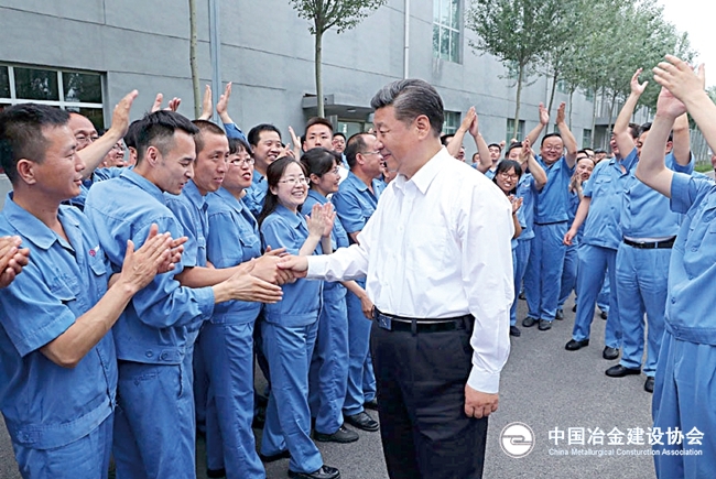 6月22日,中共中央总书记、国家主席、中央军委主席习近平在山西太原考察企业。图为习近平在山西钢科碳材料有限公司同职工亲切交流。(新华社记者 庞兴雷 摄)
