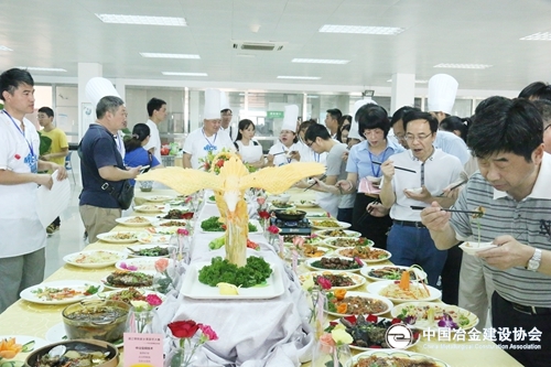 此次厨艺大赛设自选菜与必选菜,共亮相48道菜,各具千秋。有上海本帮菜、川菜、粤菜、湘菜、卤菜、东北菜、陕西大盘鸡等,酸甜苦辣咸,五味融汇南北。赤橙黄绿青蓝紫,菜色琳琅满目。菜名更是五花八门、创意十足,有球团圆子、牛气冲天、蒸蒸日上、钢铁虾球等,极具湛钢特色。更有瓜果蔬菜雕刻出来的花篮及雄鹰展翅。观众品尝的是美食美味,欣赏的是文化艺术,个个赞不绝口。现场气氛十分谐和美好。