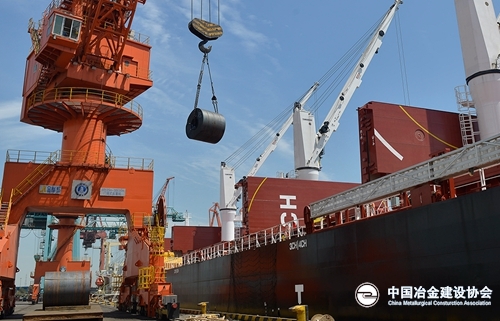 图为出口板卷在港口装船。 安钢集团 殷海民 摄影报道