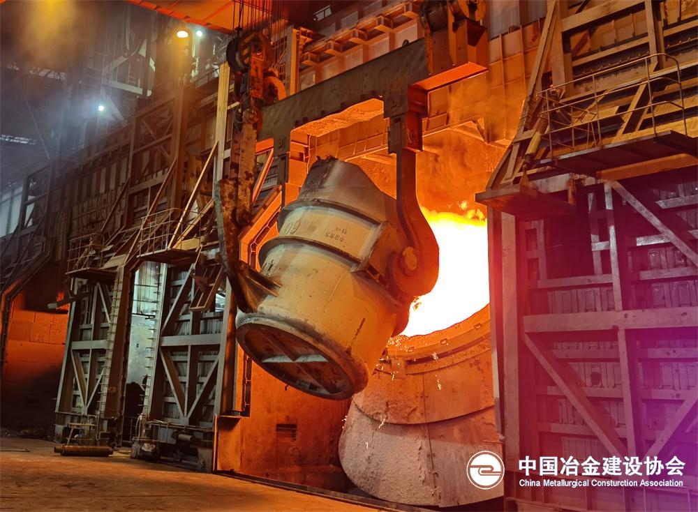 近日,中国二十二冶承建的印尼德信2号转炉开始烘炉,7点28分,火红的钢水从转炉出钢口流淌至钢水罐内,并顺利运送至连铸机,印尼德信2号转炉正式热试投产。
