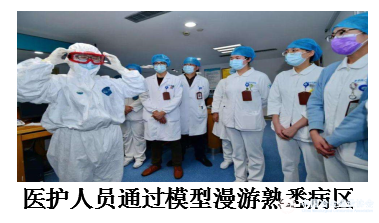 根据医疗队标准操作流程,利用BIM技术制作辅助病人进入病区、进出污染区及查房标准流程演示,用于进入病区前的医护人员培训工作。以帮助援鄂医疗队队员尽快熟悉病区环境,比传统培训方式节省时间12小时以上。