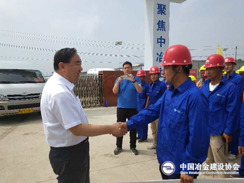 在听取了项目管理人员对工程进展、安全及质量工作的简要汇报后,云光中感谢中国二冶建设者的辛苦付出并高度赞扬了一线员工冒高温、战酷暑的拼搏奉献精神。他指出,呼市三环路工程是呼和浩特市的重点工程,也是社会关注度极高的市政工程。安全质量是工程的生命线,在工程建设中,在抓安全、保质量、保进度的同时,更要关心和关注参建人员的健康权益,要努力把项目打造为质量优良、安全高效、人本和谐的样板工程。当前,正值高温酷暑时节,为保证工程进度,许多职工仍然坚守在一线,相关部门负责同志要经常下工地,到一线,多关心职工健康,要经常送关爱、送温暖、送清凉,让广大职工能够干活舒心,工作尽心。