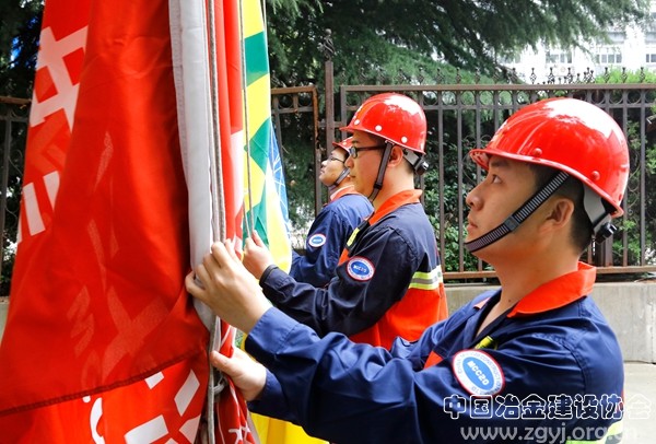 上午,中国二十冶集团举行安全生产月升旗仪式。