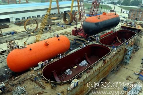 由钢构公司自主研发的大型船用全压式液化气(LPG)储罐运输船是新型高端液化气船,是实现我国近海及内河LPG运输的首选船型,其制作的LPG储罐已占国内市场70%。 中国一冶 陈 明 李雷陈青武 摄影报道 ②