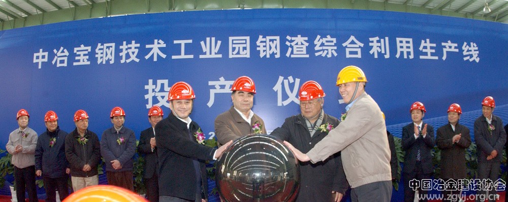 2010年1月25日下午14:00,国内首条自主集成钢渣综合利用生产线在中冶宝钢技术服务有限公司工业园区建成投产。宝钢股份公司副总经理李永祥、中冶股份监事会主席韩长林、宝钢集团原副董事长沈成孝、宝钢股份工会主席林鞍等四人共同按下投产仪式球。