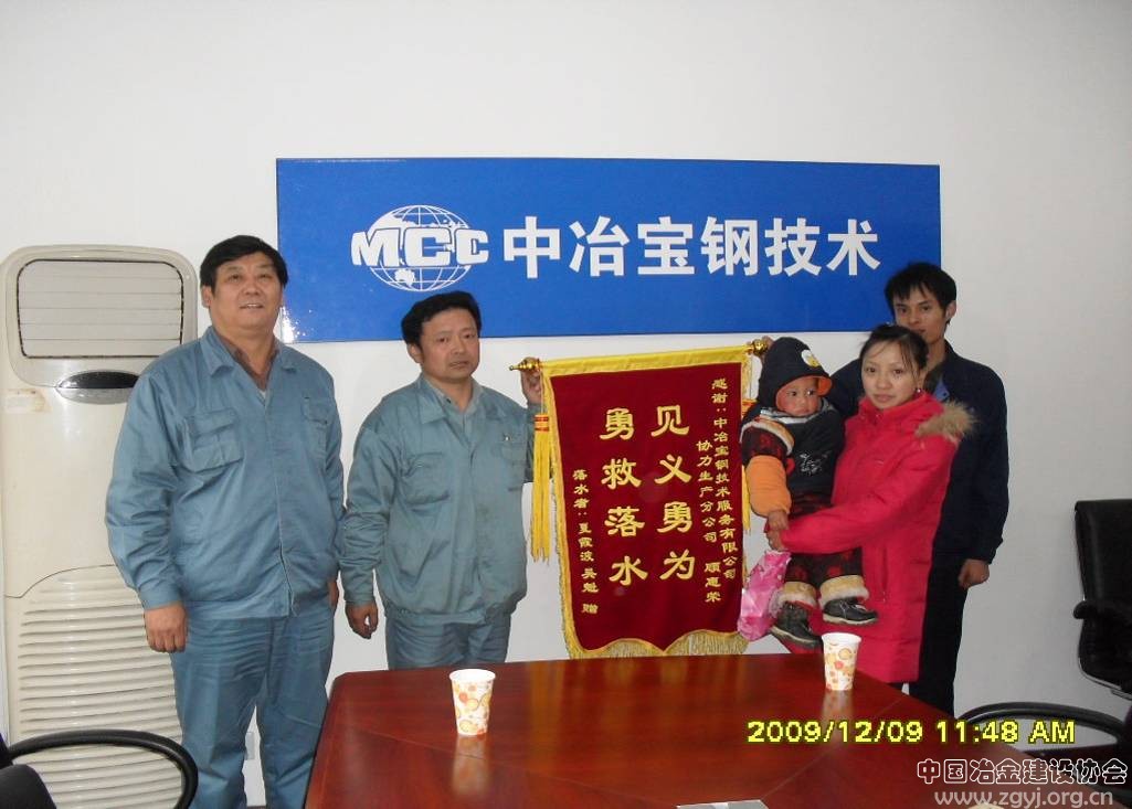 2009年12月2日中午,中冶宝钢技术协力分公司铸钢车间的电话响起,电话那边是一个青年男子,以试探的语气打听是否有一位年纪40出头叫顾惠荣的同志,当被告知确有其人时,电话那边哽咽了……,良久才又响起:“终于找到了,终于找到了救命恩人!” 12月9日上午,特殊的一家三口拿着锦旗送到了中冶宝钢技术协力分公司党委书记手中,锦旗上写着“见义勇为,勇救落水”。寻找了两个多月,落水母子终于找到了自己的救命恩人----协力分公司铸钢车间顾惠荣。