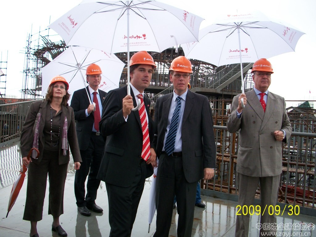 9月30日,荷兰王国建设部部长,荷兰王国驻华大使,上海世博会荷兰政府总代表一行共20多人来到宝冶建设上海世博会荷兰馆现场,对荷兰馆的建设情况进行参观考察。