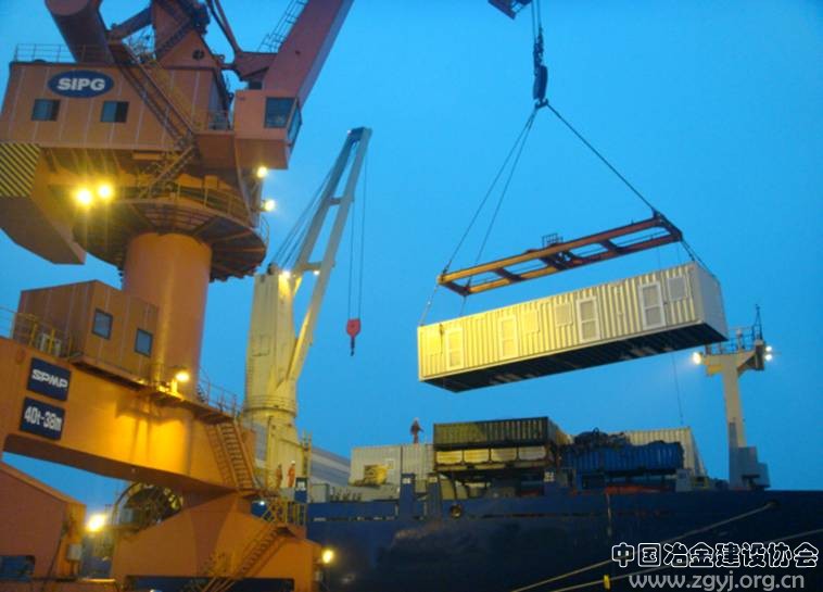 2009年7月11日晚,中国二十冶承担的西澳SINO铁矿项目国内生产的1500人营地最后38个4人营房,由S.Bothnia200901号国际运输船运载驶离上海罗泾码头,宣告了本项目营房全部完成,共生产营房376箱,为推进项目整体建设迈出重要一步。