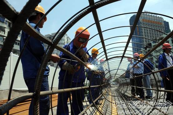 连日来的持续高温天气给奋战在二环线施工的作业人员带来极大的考验。7月18日,在路桥公司二环线五标段施工现场,8台钻机轰鸣作响,施工人员正在桩基钢筋笼旁紧张施焊,烈日炎炎下弧光闪闪,焊花飞溅,汗珠布满脸上,透湿的工作服紧贴在前胸后背,一派热火朝天的大干景象。 (中国一冶 陈 明 陈建华 摄) ②