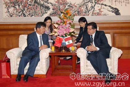 日前,中冶集团总经理沈鹤庭在钓鱼台与秘鲁总统加西亚举行会谈。