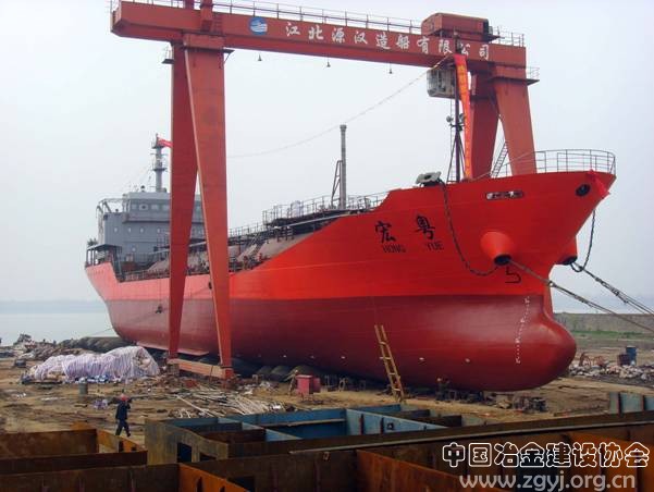 3月15日13:00点整,在湖北黄冈江北源汉造船有限公司的码头上,人头攒动,彩旗飘扬。在锐耳的冲天爆竹声中,防城港西南海洋运输有限公司1#3700 m3全压式液化石油气(LPG)运输船“宏粤号”载着由武汉一冶钢构压力容器分公司建造的储罐,从落差7m的高处以完美姿态滑入水中,掀起一片浪花和欢呼声。
