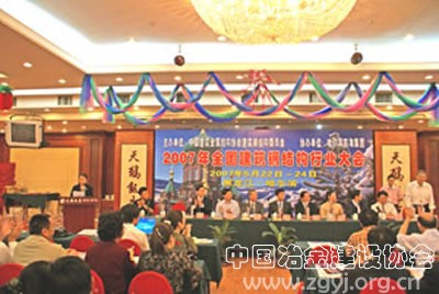 5月22日~28日,中国建筑金属结构协会建筑钢结构委员会在哈尔滨召开了“全国建筑钢结构行业大会”。会议由钢结构委员会做了2006年度工作报告,对2006年度行业内文明企业、优质工程、先进个人等进行了表彰,并进行了典型工程专题报告和论文交流。上海宝冶建设有限公司获得2006年度钢结构行业文明企业,由上海宝冶建设承建的“郑州新郑国际机场航站楼改扩建钢结构工程(制作、安装)”和“国家体育场钢结构工程(安装)”获得中国建筑工程“钢结构金奖”,公司副总工程师杨华兴同志获得行业工作积极分子称号。会议还特别邀请了宝冶建设五颗松项目部项目经理张贵廷同志做了题为“五颗松体育馆钢桁架累积滑移工艺”的交流发言。